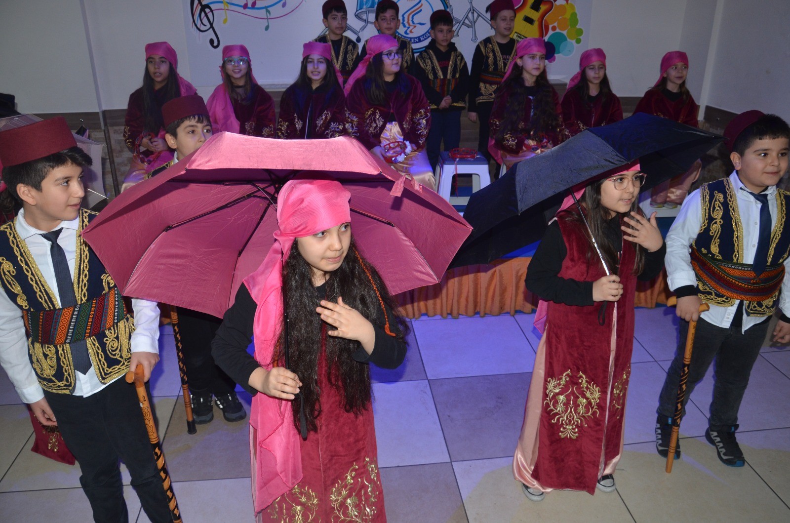 Yöresel kıyafetli küçük öğrencilerden oluşan musiki korosu, söylediği Üsküdar’a giderken” ve “Arabaya taş koydum” parçalarıyla izleyenleri eğlendirdi.