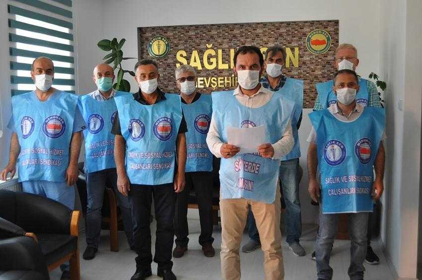 Sağlık-Sen Nevşehir Şube Başkanı ve beraberindeki sendika yöneticileri ile üyeleri yaptıkları basın toplantısında sağlıkta gelir adaletsizliği ve şiddete dikkat çekti.