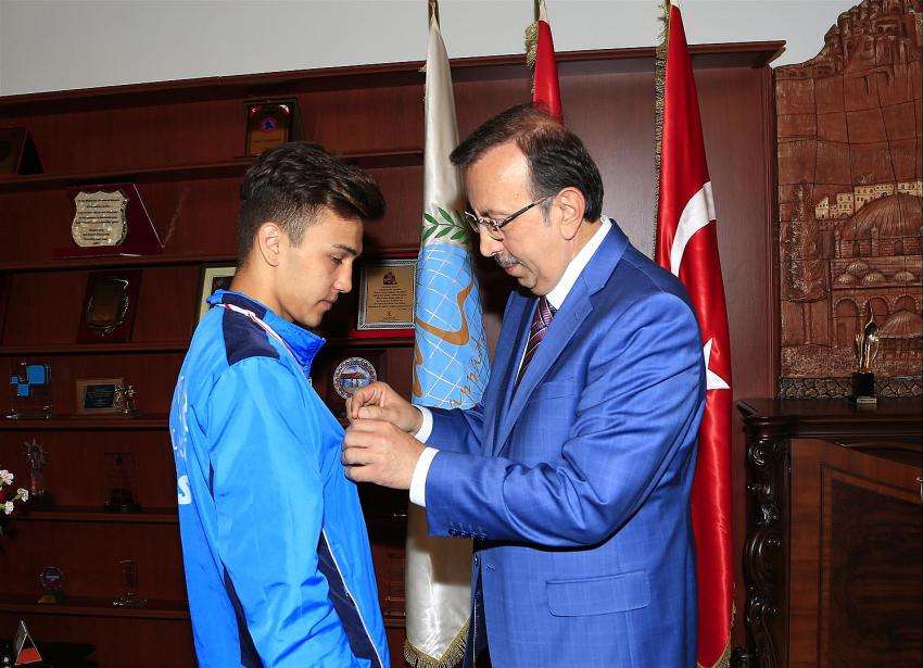 Belediye Başkanı Atilla Seçen daha sonra, Samet Akay’ı ödüllendirdi.