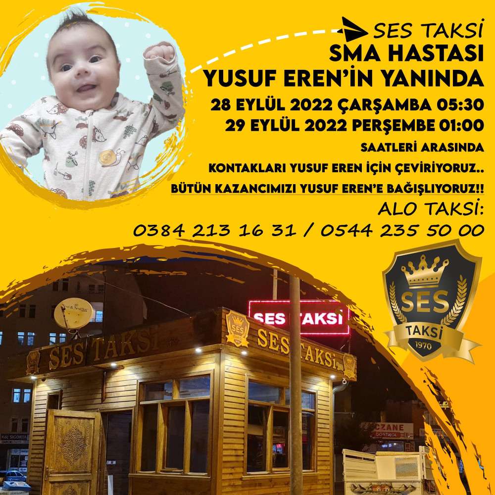 Ses Taksi 28 Eylül Çarşamba sabah 05.30’dan 29 Eylül Perşembe gece 01.00’e kadar kontaklarını SMA hastası Yusuf Eren için çevirecek. Ses taksi gün boyunca elde edilen kazançlarını ise tedavi için bekleyen Yusuf Eren’e bağışlayacak.
