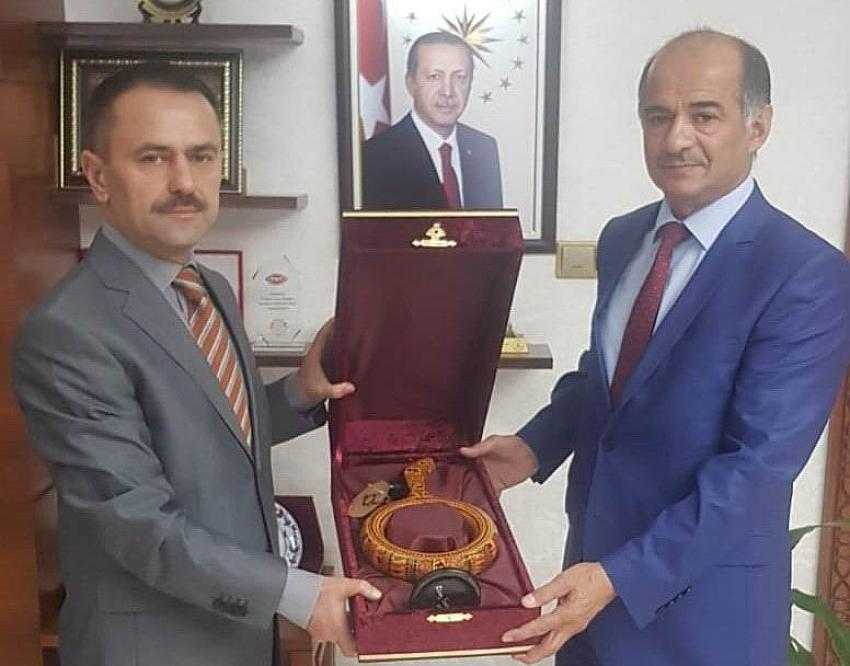 Nevşehir Valisi İlhami Aktaş, Nevşehir Sosyal Güvenlik Kurumu İl Müdürü iken Hakkari SGK İl Müdürlüğüne atanan Erdin Polat’ı makamında kabul etti.   Aile Çalışma ve Sosyal Hizmetler Bakanlığı Sosyal Güvenlik Başkanlığı Kararnamesiyle Hakkari SGK İl Müdürlüğüne atanan Erdin Polat, Vali Aktaş’a veda ziyaretinde bulunarak, kendilerini kabullerinden dolayı teşekkürlerini iletti.   Vali İlhami Aktaş ise, İlimizden Hakkari SGK İl Müdürlüğüne atanan Polat’a, yeni görev yerinde başarılar diledi ve kendilerine günün hatırası olarak, Kapadokya yöresine ait el işlemeli Gagalı Hitit hediye etti.