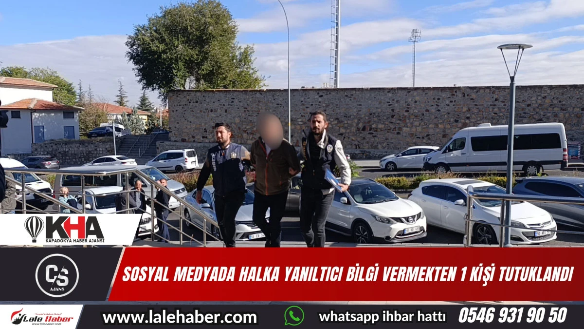 Alınan bilgilere göre, Siber Suçlarla Mücadele Şube Müdürlüğü ekiplerince sosyal medya hesaplarından halka yanıltıcı bilgi yayma suçundan gözaltına alınan H.Y. emniyetteki işlemlerinin ardından adliyeye sevk edildi. H.Y. sevk edildiği mahkeme tarafından yanıltıcı bilgiyi yayma suçundan tutuklanarak Nevşehir E Tipi Kapalı Cezaevi’ne gönderildi.