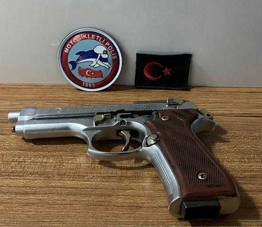 Alınan bilgilere göre, Asayiş Şube Müdürlüğü motosikletli polis timleri tarafından şüpheli A.K.’nin yapılan üst aramasında 1 adet üzerinde şarjörü ve fişeği bulunmayan kurusıkıdan bozma faturasız tabanca ele geçirildi. Şüpheli A.K. hakkında 6136 sayılı ateşli silahlar ve bıçaklar ile aletler hakkında kanuna muhalefet etmek suçundan adli işlem başlatıldığı öğrenildi.