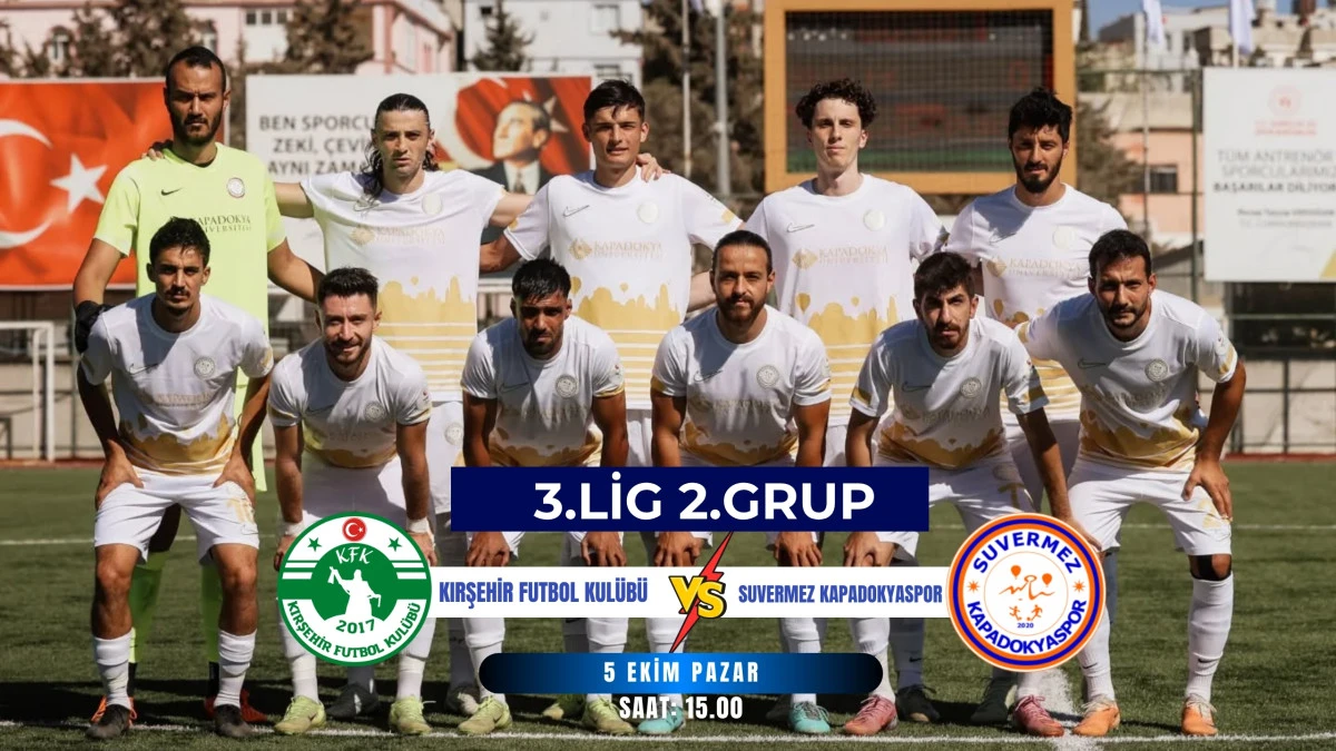 Nesine 3.Lig 2.Grupta mücadele eden Suvermez Kapadokyaspor ligin 5.haftasında 5 Ekim Pazar günü Ahi Stadyumunda Kırşehir Futbol Kulübü ile karşılaşacak.