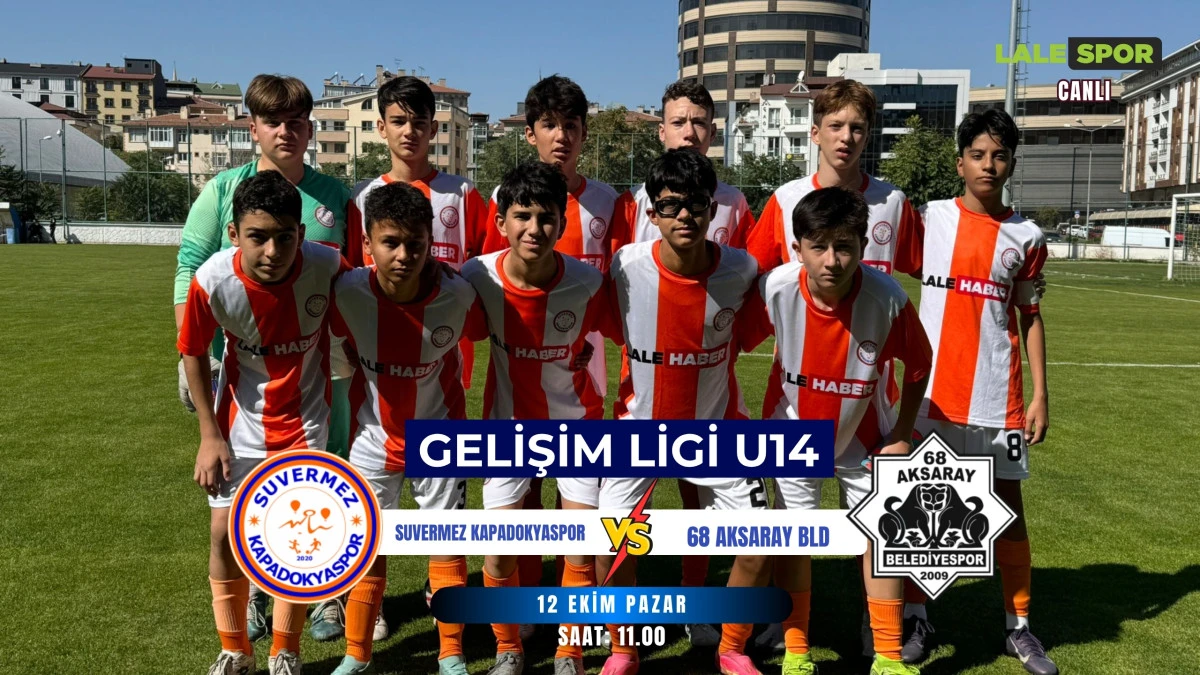 Gelişim Ligi U14 Ligi 19.Grupta mücadele eden Suvermez Kapadokyaspor ligin 5.haftasında 2 Nolu Çim Futbol Sahasında 68 Aksaray Belediyespor ile karşılaşacak. Bu mücadele Lale Haber’den canlı olarak futbolseverler ile buluşacak.