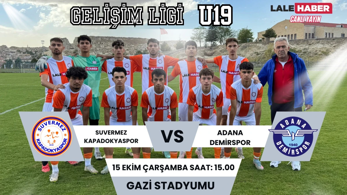 Gelişim Ligi U19’da mücadele eden Suvermez Kapadokyaspor ligin 5.haftasında Adana Demirspor ile karşılaşacak. 15 Ekim Çarşamba günü saat 15.00’te Gazi Stadyumunda oynanacak olan Suvermez Kapadokyaspor – Adana Demirspor mücadelesini Fatih Karacadağ yönetecekken yardımcılıklarını ise Seyit Ali Köksal ve Mehmet Teyyar Tekin yapacak.