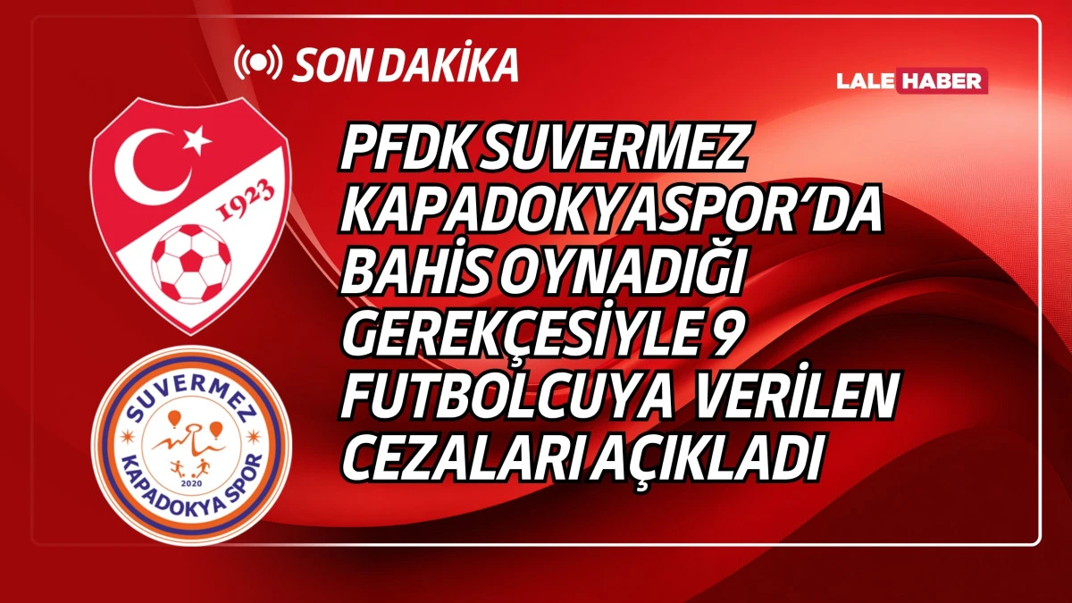 Profesyonel Futbol Disiplin Kurulu’nun 20.11.2025 tarih ve 30 sayılı toplantısında FDT’nin 57.maddesi uyarınca 3.Lig sporcuları ve sevk tarihi itibarıyla bir kulübe bağlı olmayan sporcular hakkında alınan kararlar açıklandı.PFDK’nın açıkladığı kararlar ile birlikte bahis soruşturması kapsamında Suvermez Kapadokyaspor’un 9 futbolcusu da ceza aldı. PFDK kararları ile birlikte Suvermez Kapadokyaspor’da oynayan 9 futbolcu 45 gün ile 9 ay arasında hak mahrumiyeti cezası aldı.