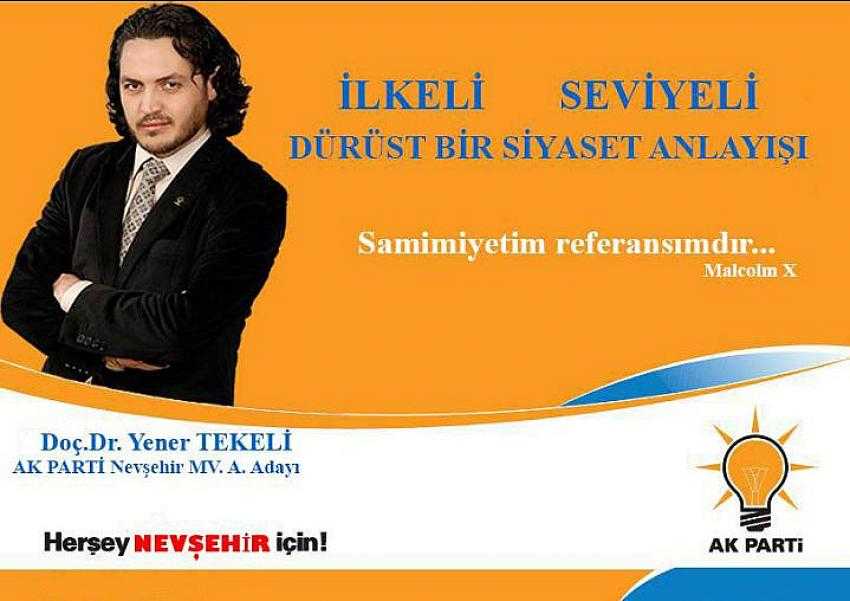 Adıyaman Üniversitesinde görevli öğretim görevlisi Doç. Dr. Yener Tekeli AK Parti’den Nevşehir milletvekili aday adayı olabilmek için istifa etti.