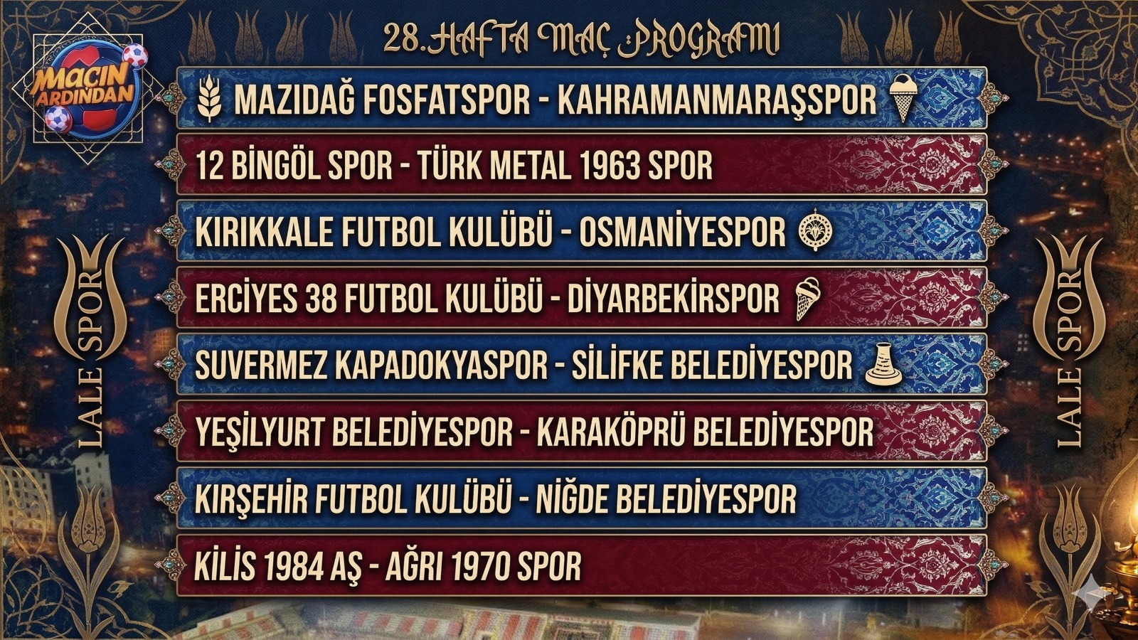TFF 3.Lig 2.Grupta 28.hafta maçları 5 Nisan Pazar günü oynanacak. Tüm karşılaşmalar saat 14.00’te başlayacakken lider 12 Bingölspor kendi sahasında konuk edeceği Türk Metal 1963 Spor karşısında alacağı 1 puan ile şampiyonluğunu ilan edecekken ligden düşecek ilk takımında bu hafta belli olması bekleniyor.