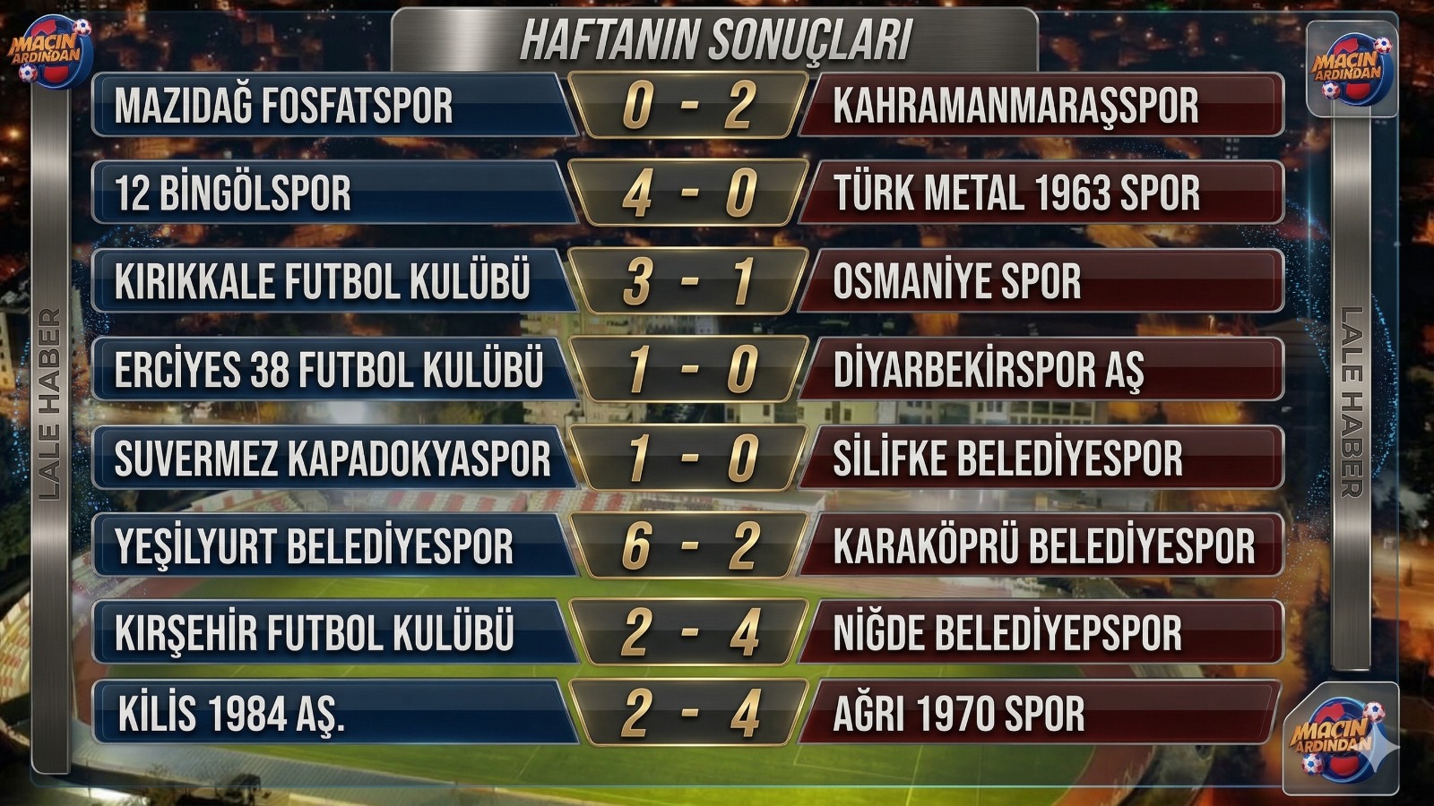 İşte haftanın sonuçları: