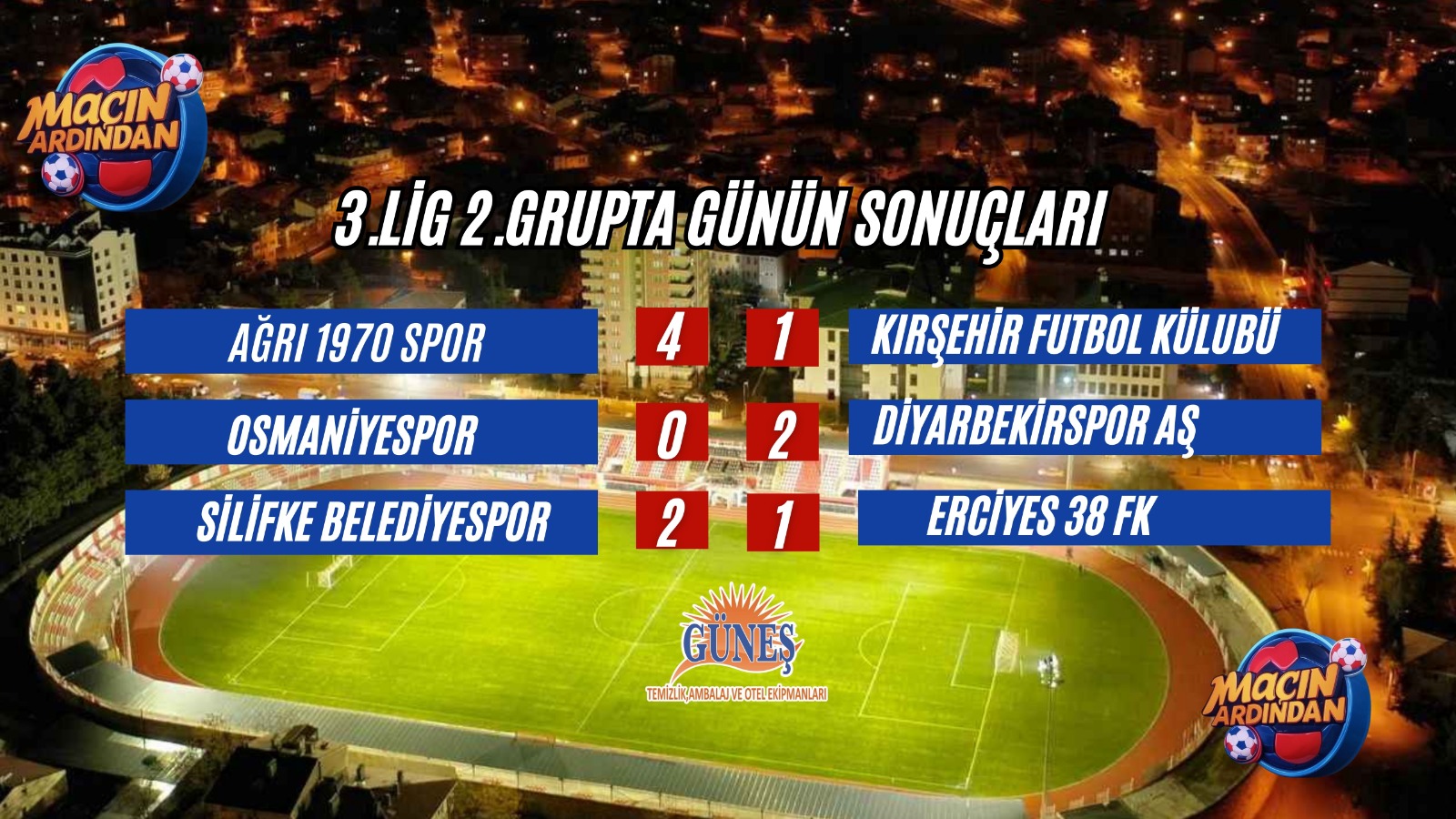 TFF 3.Lig 2.Grupta 18.hafta heyecanı bugün oynanan 3 karşılaşma ile başladı. Günün en farklı skorunu Ağrı 1970 spor kendi saha ve seyircisi önünde konuk ettiği Kırşehir FK takımını 4-1 mağlup ederek elde etti.