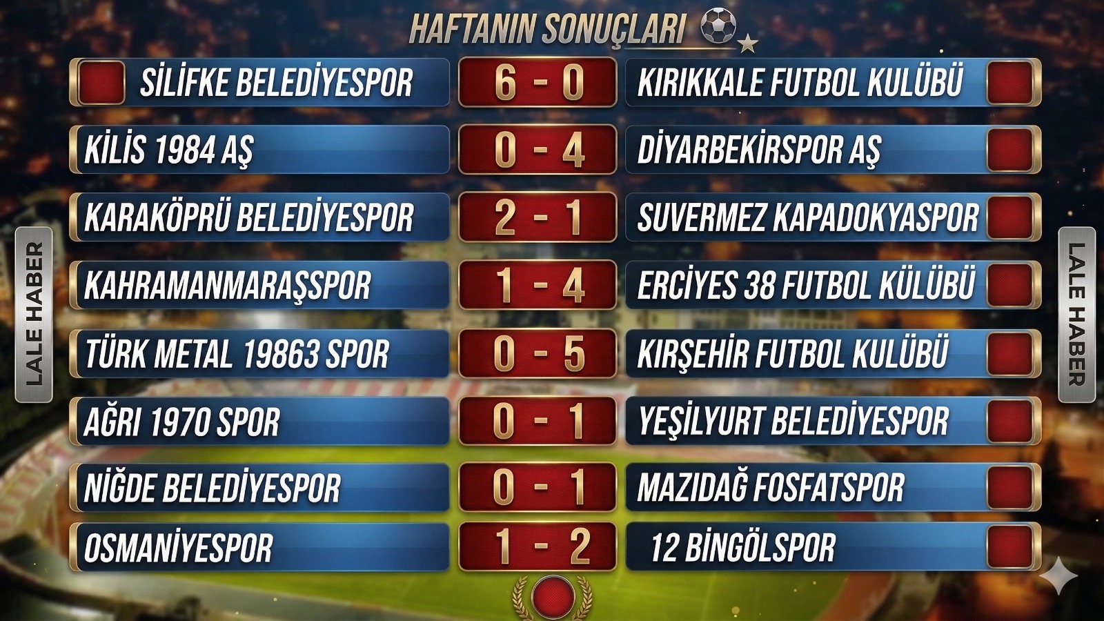 İşte haftanın sonuçları: