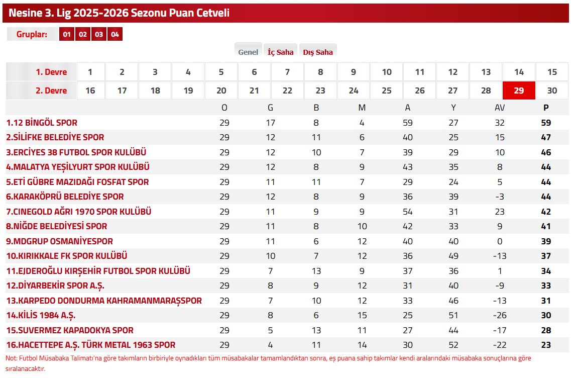 TFF 3.Lig 2.Grupta haftanın sonuçları ve puan durumu