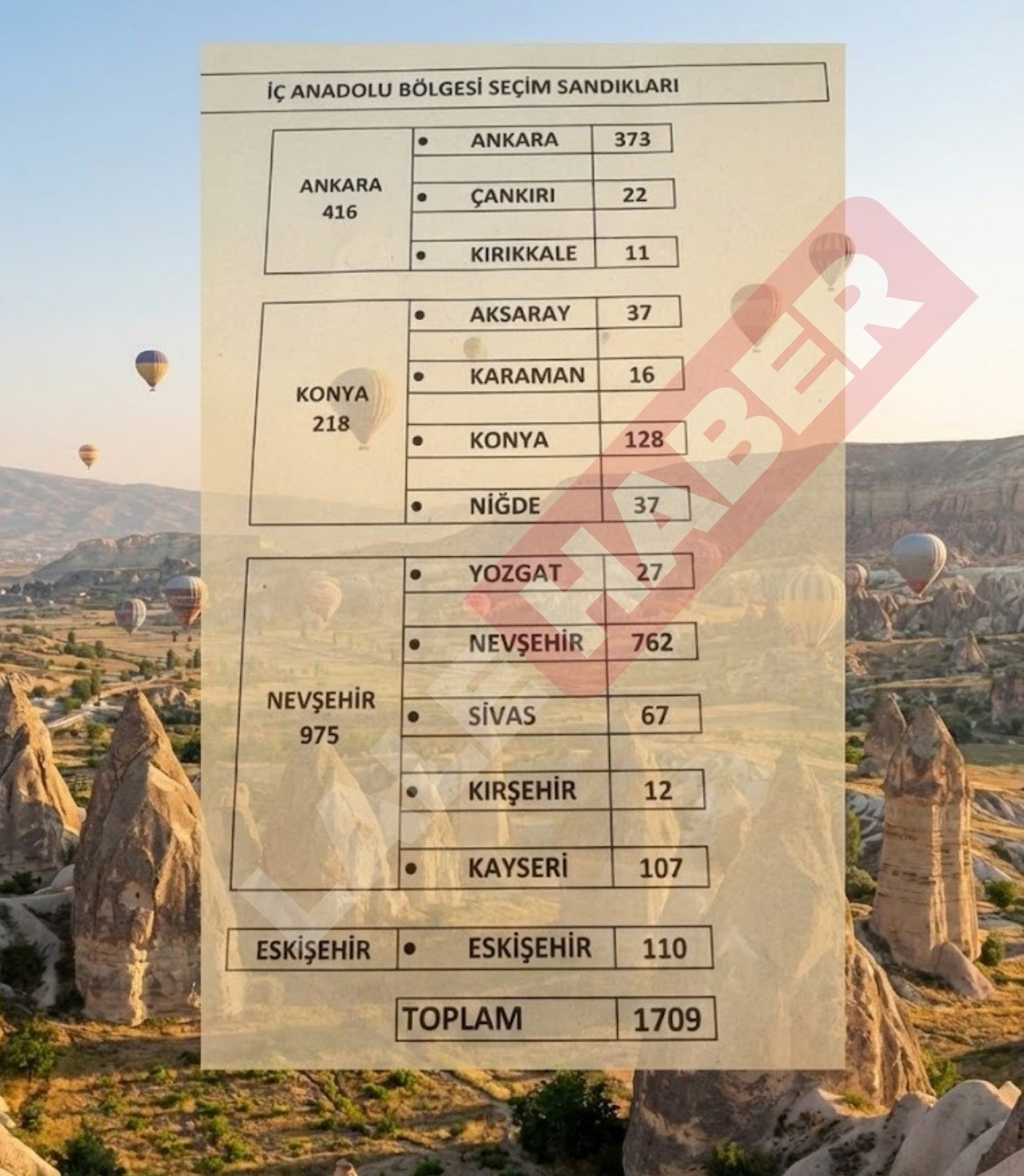 İşte İç Anadolu Bölgesi seçim sandıkları ve oy dağılımı şu şekilde: