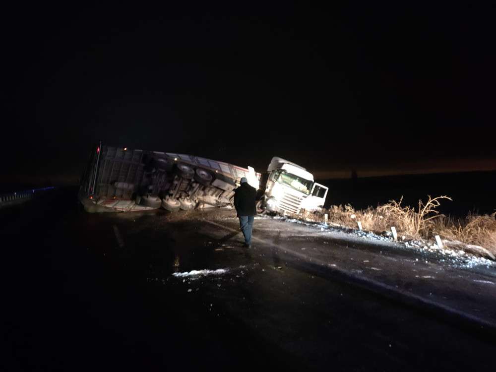 Çardak otogar arasında ki yolda bir tır kontrolünü kaydederek devrildi.