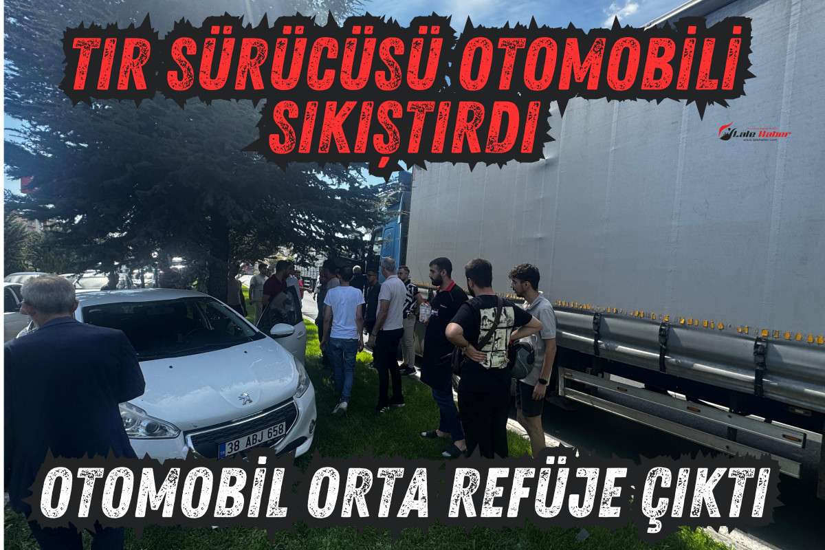 Nevşehir 2000 Evler Mahallesi’nde tır sürücüsünün otomobili sıkıştırması sonrasında otomobil orta refüje çıktı.