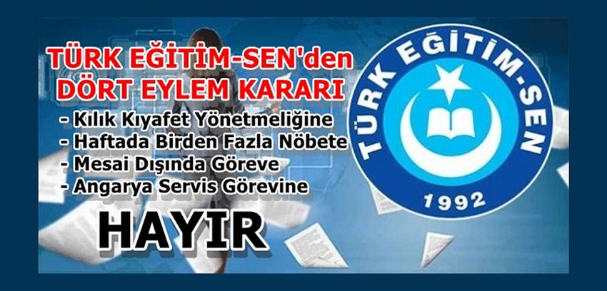 Türk Eğitim Sen Nevşehir İl Başkanı Tayfur Urgenç yaptığı açıklamada Türk Eğitim Sen’in 2021-2022 Eğitim ve Öğretim yılının başlangıcında dört eylem kararı aldığını belirterek üyelerinin bireysel dilekçelere ve eylem kararlarına Türk Eğitim Sen Nevşehir şubesinin internet sitesinden ulaşabileceklerini belirtti.