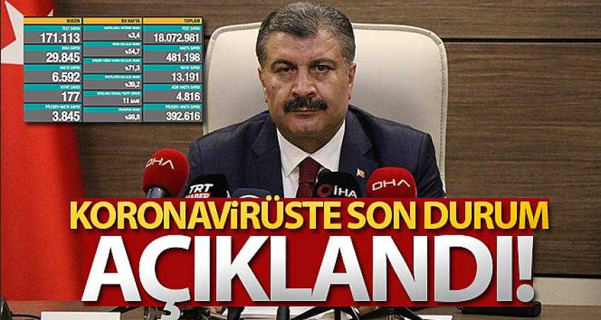 Sağlık Bakanlığı, son 24 saatte 177 kişinin korona virüsten hayatını kaybettiğini, 29 bin 845 yeni vaka sayısının olduğu açıkladı.