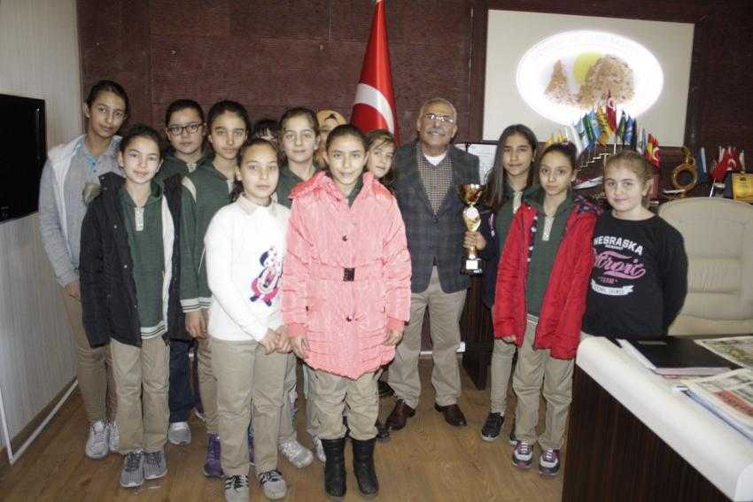Öğrenciler, kazandıkları bu başarıların ardından Okul Müdürü Fatih Arıkan ve Beden Eğitimi Öğretmeni Pınar Ünlü Hatipoğlu ile birlikte Uçhisar Belediye Başkanı Ali Karaaslan’ı makamında ziyaret ederek kazanmış oldukları kupaları Başkan Karaaslan’a sundular.