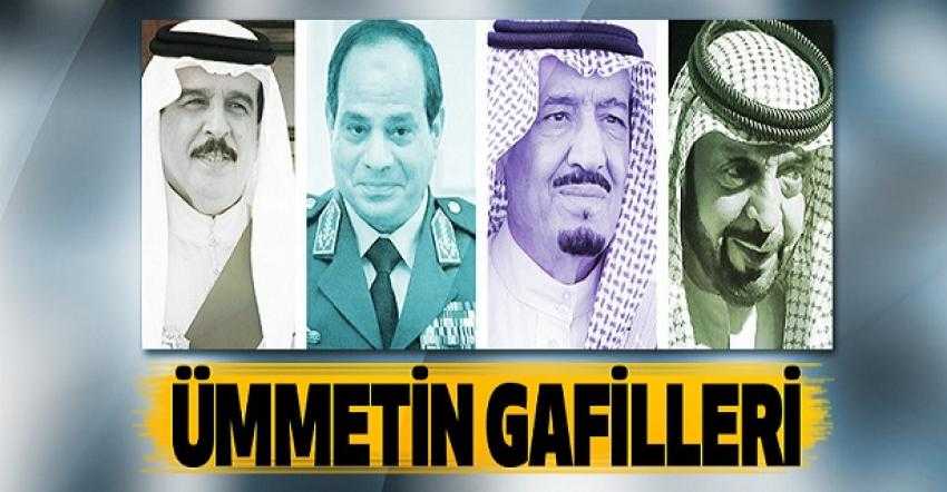 Suriye, Irak, Lübnan, Yemen ve Libya’da Müslümanlar’ın bulunduğu toprakların tamamı yangın yerine dönerken Suudi Arabistan ve işbirlikçileri, bu yangının ve katliamın sorumluları olan ABD, İsrail ve AB’ye tepki vermek yerine kardeş Katar’ı hedef seçti. ABD’ye haraç veren, İsrail’in işgallerine sessiz kalan, AB’nin sözünü ikiletmeyen kiralık Firavunlar, Katar’ı ablukaya almış, gerekçe olarak da insan hakları savunucuları, işgalcilere karşı duran “Hamas ve İhvan’ı” sunmuştu. Suud ve çetesi dün gerekçelerini resmileştirdi. Suud, BAE, Bahreyn ve Mısır, 9 ülkeden 59 kişi ile 12 kuruluşu ‘terör listesine’ aldı. Skandal listede Dünya Müslüman Alimler Birliği Başkanı Mısırlı Yusuf El-Karadavi ve Katar eski İçişleri Bakanı Abdullah bin Halid Al Sani de terörist ilan edildi. Listedeki kurumların tamamının “Yardım” ile özdeşleşmiş olması dikkatlerden kaçmadı. Karadavi’nin terörist ilan edilmesi Türkiye’de de infiale yol açtı. Binlerce kişi Karadavi’nin Türkiye’ye karşı övgüleri, 15 Temmuz’daki mili mücadele esnasında ettiği duaları hatırlattı.