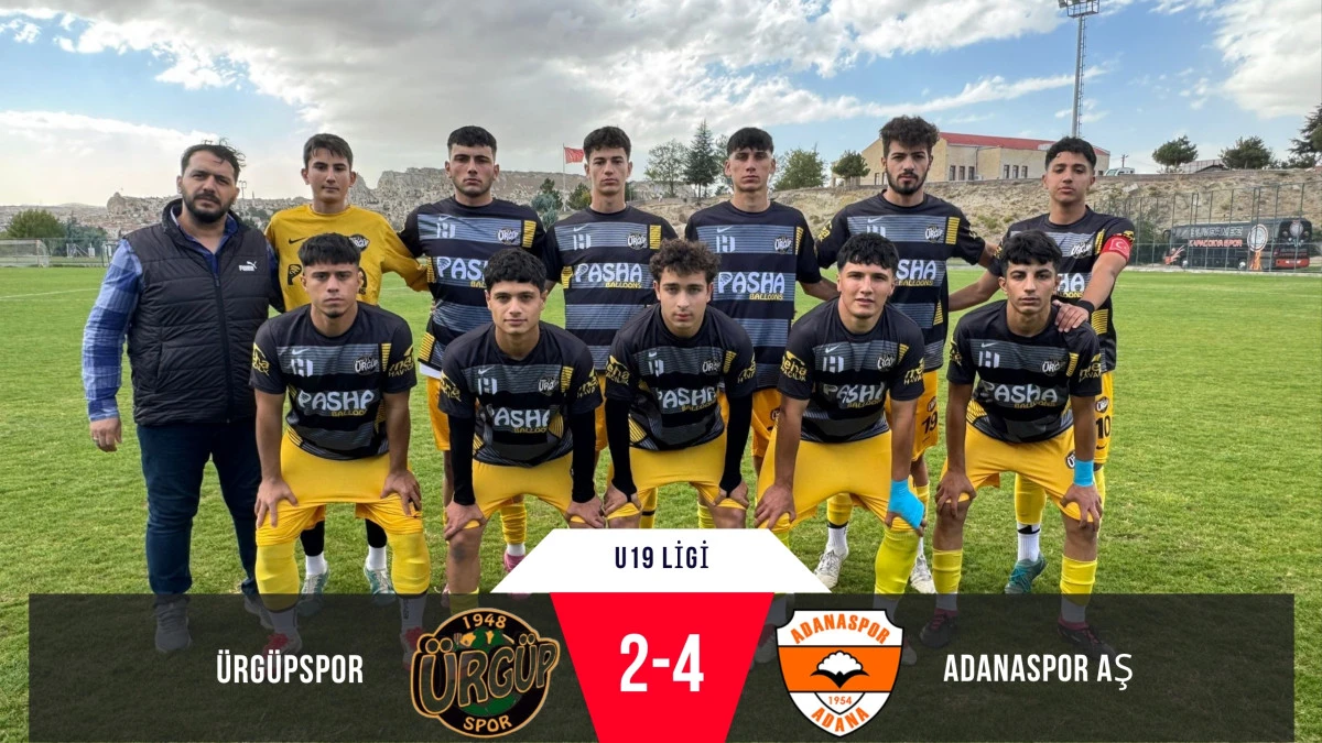 Gelişim Ligi U19 Liginde mücadele eden Ürgüpspor ligin 5.haftasında Adanaspor AŞ.’yi konuk etti. Mücadelenin ilk dakikalarından itibaren üstün bir konuk sergileyen konuk edip Adanaspor AŞ mücadelenin 90 dakikasını 4-2 kazandı.