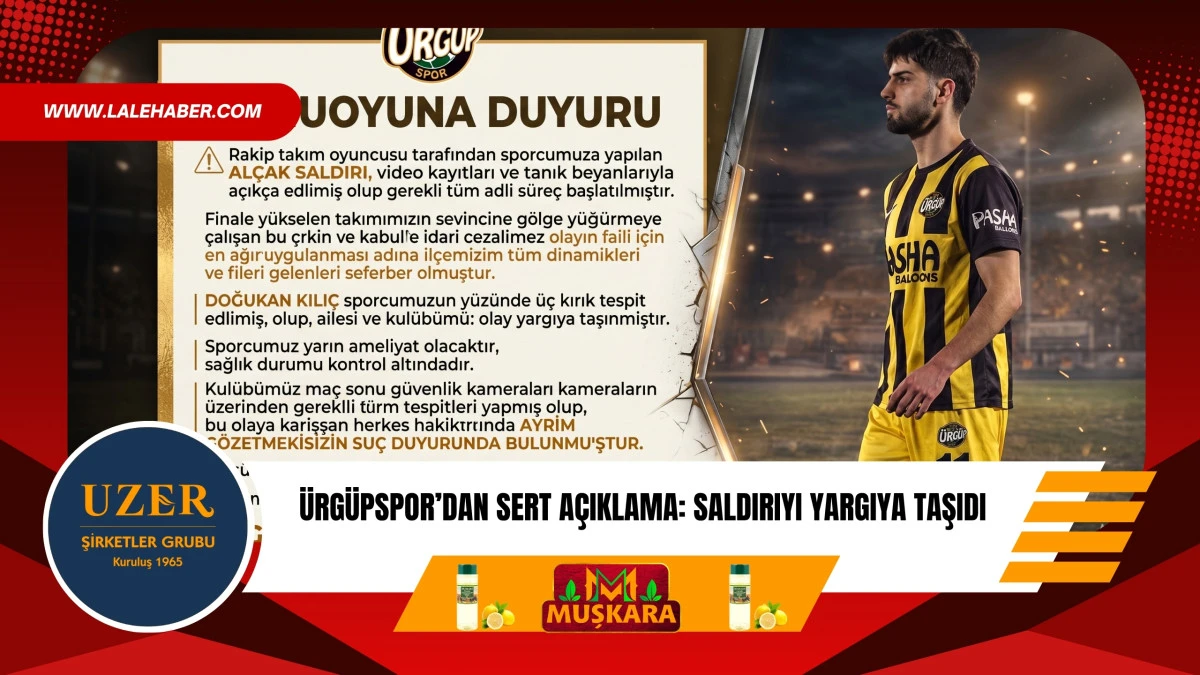 Nevşehir temsilcisi Ürgüpspor, bir rakip takım oyuncusunun kendi futbolcularına yönelik gerçekleştirdiği saldırıya ilişkin kamuoyuna sert bir açıklama yaptı. Kulüp tarafından yapılan duyuruda, yaşanan olayın “alçak saldırı” olarak nitelendirildiği ve tüm hukuki sürecin başlatıldığı bildirildi.