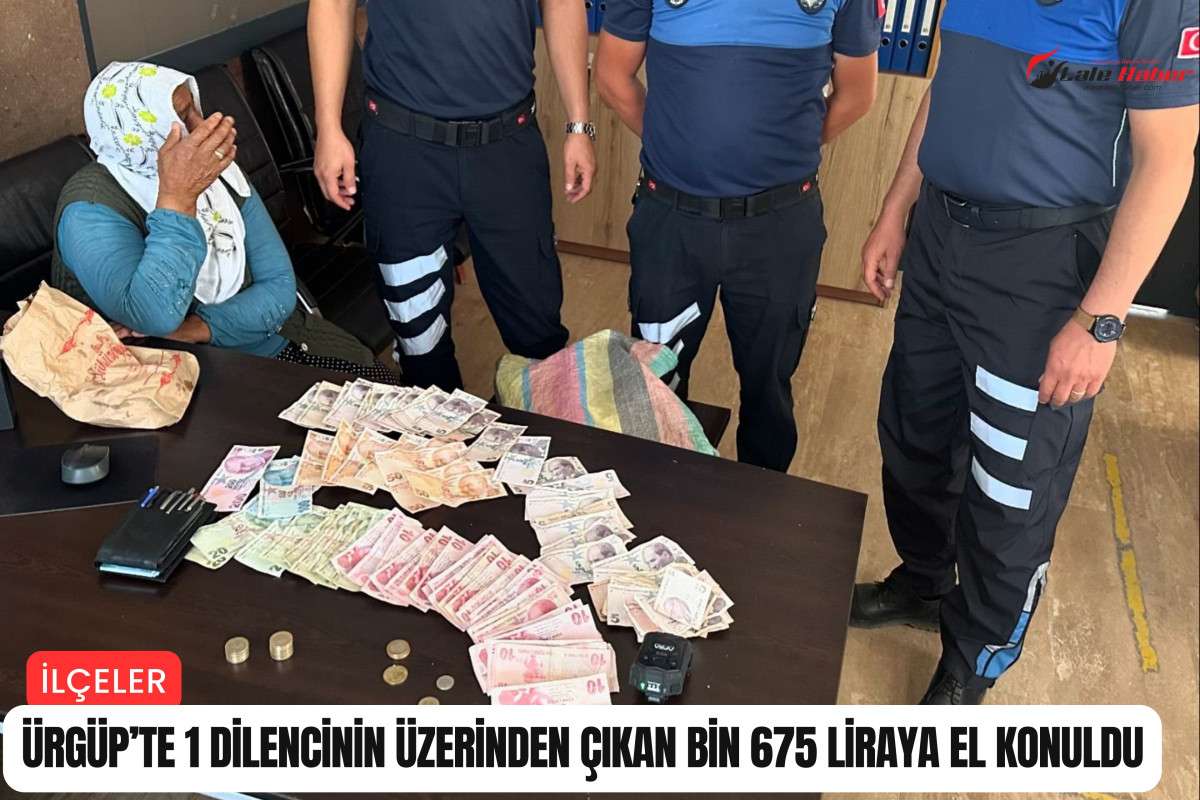 Ürgüp Belediyesi Zabıta Müdürlüğü ekiplerince ilçede yakalanan bir dilencinin üzerinden çıkan bin 675 lira paraya el konuldu.