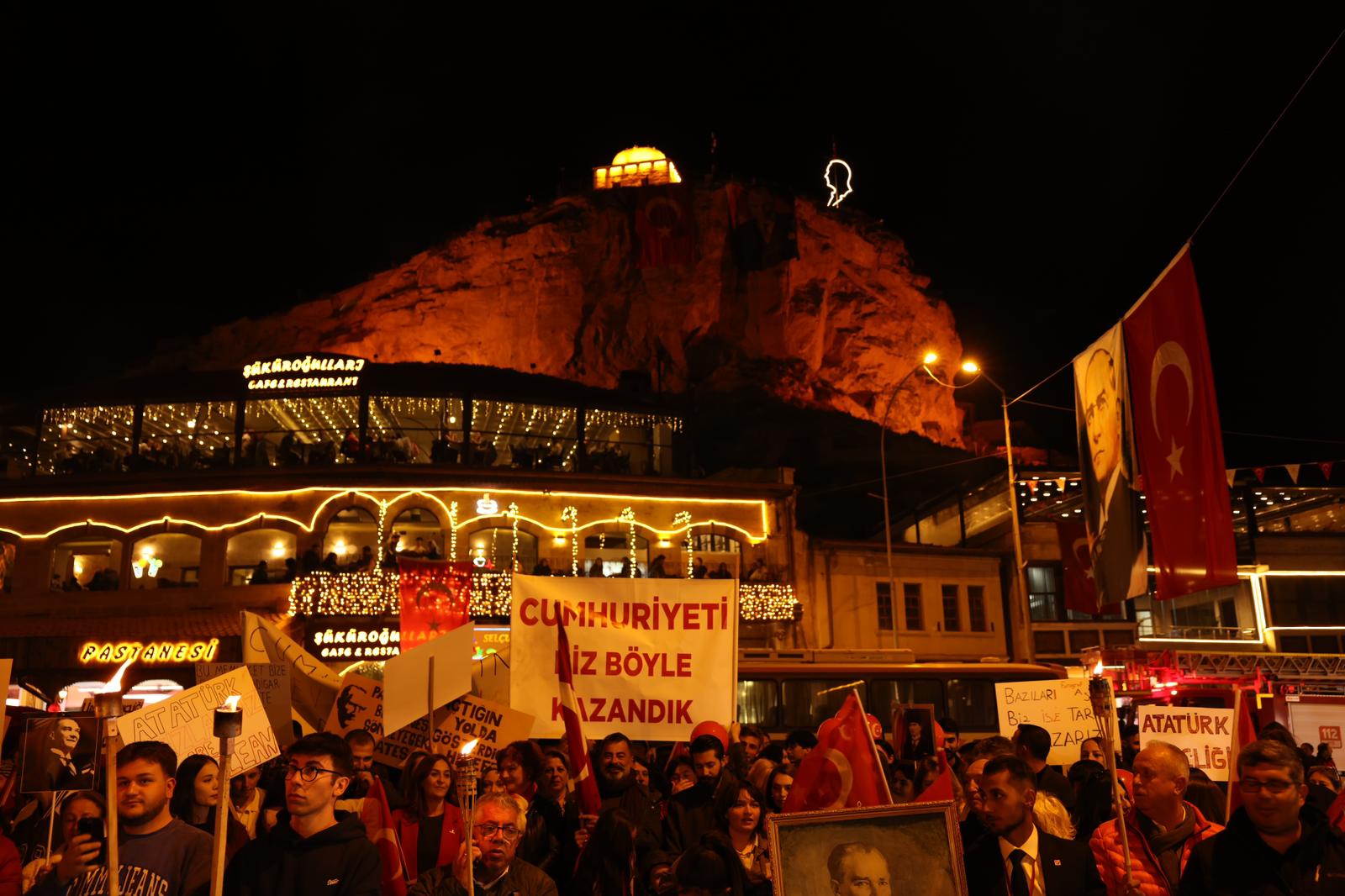 Akşam saatlerinde ise fener alayı yürüyüşü için binlerce kişi Cumhuriyet Meydanı’nda toplandı. Tesan Fen Lisesi Bando Ekibinin ritimleri eşliğinde vatandaşlar, ellerindeki Türk bayrakları, fenerler ve meşalelerle Güllüce Caddesi’nden Atatürk Bulvarı güzergâhında yürüyüş gerçekleştirdi. Ürgüp Belediye Başkanı Ali Ertuğrul Bul ve çok sayıda vatandaşın katılımıyla Ürgüp sokakları kırmızı-beyaz renklere büründü.