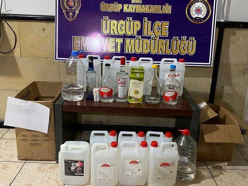 Ürgüp İlçe Emniyet Müdürlüğü Suç Önleme ve Soruşturma Büro Amirliğine bağlı ekiplerin yapmış olduğu istihbari çalışmalar sonucu 61 lt kaçak alkol yapımında kullanılan malzeme ele geçirildi.