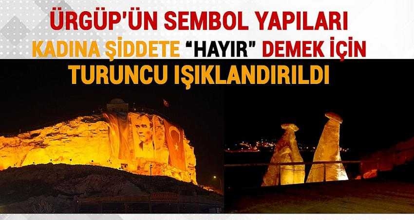 Ürgüp'ün sembol yapıları kadına şiddete 'Hayır' demek için turuncu ışıklandırıldı