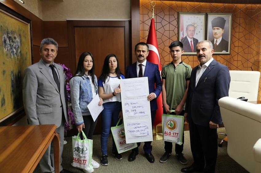 Orman Genel Müdürlüğü’nün (OGM)180. Kuruluş Yıldönümü etkinlikleri kapsamında “İnsan İçin Sağlık, Sağlık İçin Orman” teması dâhilinde düzenlenen “Resim” ve “Güzel Söz (Slogan) Yarışmasında dereceye giren öğrencilerle tek tek ilgilenerek, sohbet eden Vali İlhami Aktaş, ödüllerini kendilerine verdi.