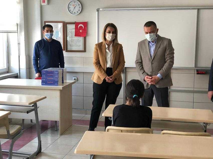 Nevşehir Valisi İnci Sezer Becel ve AK Parti Nevşehir milletvekili Mustafa Açıkgöz, H. Lütfi Pamukçu Ortaokulunda uzaktan eğitim gören öğrencilere tabletlerini dağıttı.