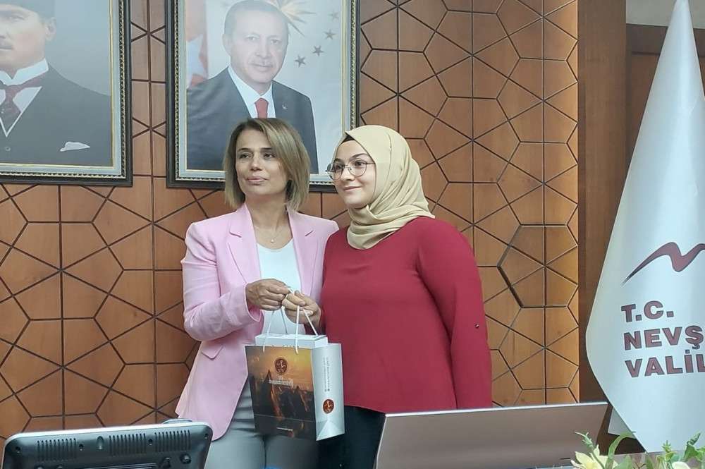 Nevşehir Valisi İnci Sezer Becel, 2022 YKS Üniversite Sınavında Ek Puanla Türkiye 1.si ve Nevşehir 1.sini çıkaran Recep Tayyip Erdoğan Proje Anadolu İmam Hatip Lisesi öğrencileri, idareci ve velileri makamında kabul ederek tebrik etti.