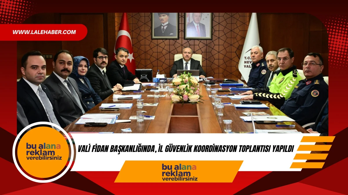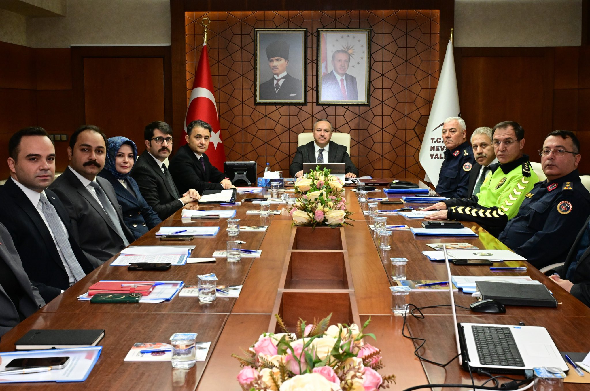 Nevşehir Valisi Ali Fidan başkanlığında, ilçe kaymakamları, İl Jandarma Komutanı Jandarma Kıdemli Albay Mehmet Çelik, İl Emniyet Müdürü Serkan Karaman ve İl Göç Müdürü Ekrem Emre Çölyen ile ilgili birim müdürlerinin katılımıyla İl Güvenlik Koordinasyon ve Değerlendirme Toplantısı gerçekleştirildi. Toplantıda; il genelinde kamu düzeni ve güvenliğinin sağlanmasına yönelik yürütülen çalışmalar, suç ve suç unsurlarıyla etkin mücadele, asayişin temini, vatandaşların huzur ve güvenliğinin artırılması amacıyla alınan tedbirler değerlendirildi.