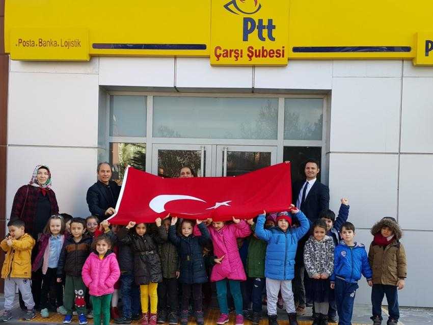 Kahraman askerlerimize moral vermek amacıyla gerçekleşen etkinlikte okul öğrencileri velilerinin ve öğretmenlerinin yardımıyla askerlerimize, ülkemize, bayrağımıza olan sevgilerini mektuplara döktüler. Çizdikleri resimleri de ekleyerek hazırladıkları mektupları Afrin’de bulunan kahraman askerlerimize ulaştırılması için hep beraber postane müdürlüğüne giderek Hatay Reyhanlı Jandarma Komutanlığına gönderdiler.
