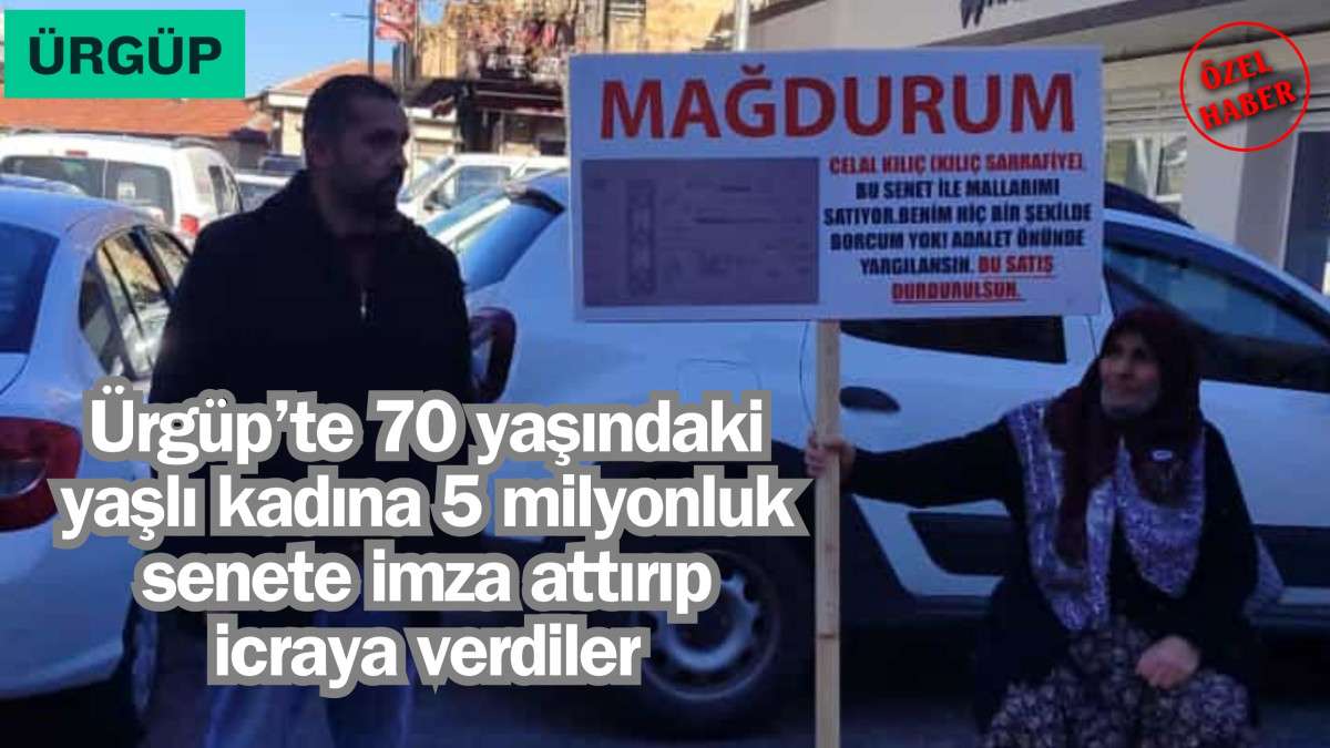 Nevşehir’in Ürgüp ilçesinde oturan 70 yaşındaki Emine Sağar’a 5 milyonluk senet imzalattığı iddia edilen sarraf yaşlı kadını icraya verdi.