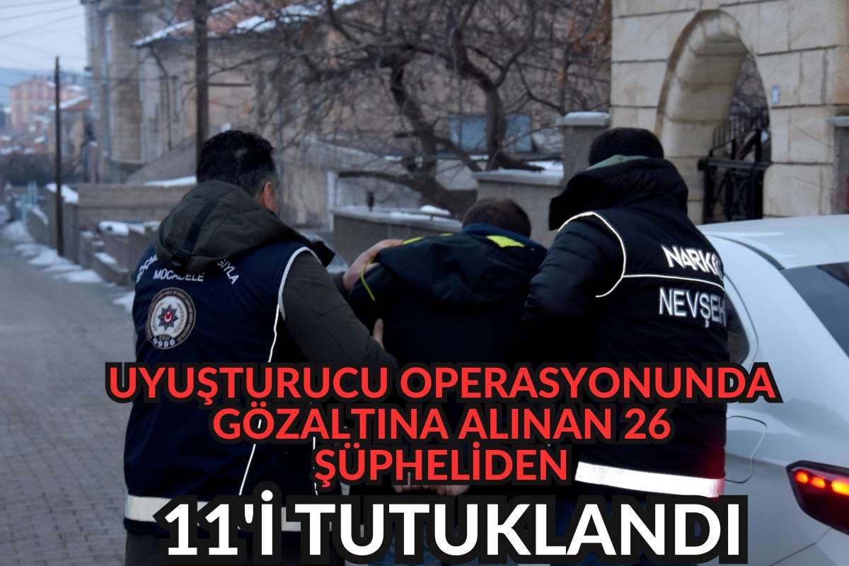 Nevşehir İl Emniyet Müdürlüğü Narkotik Suçlarla Mücadele Şube Müdürlüğü tarafından 3 ilde yapılan operasyon sonrasında gözaltına alınan 26 şüpheliden 11’i tutuklanırken 4 şüpheli ise adli kontrol şartıyla serbest bırakıldı.